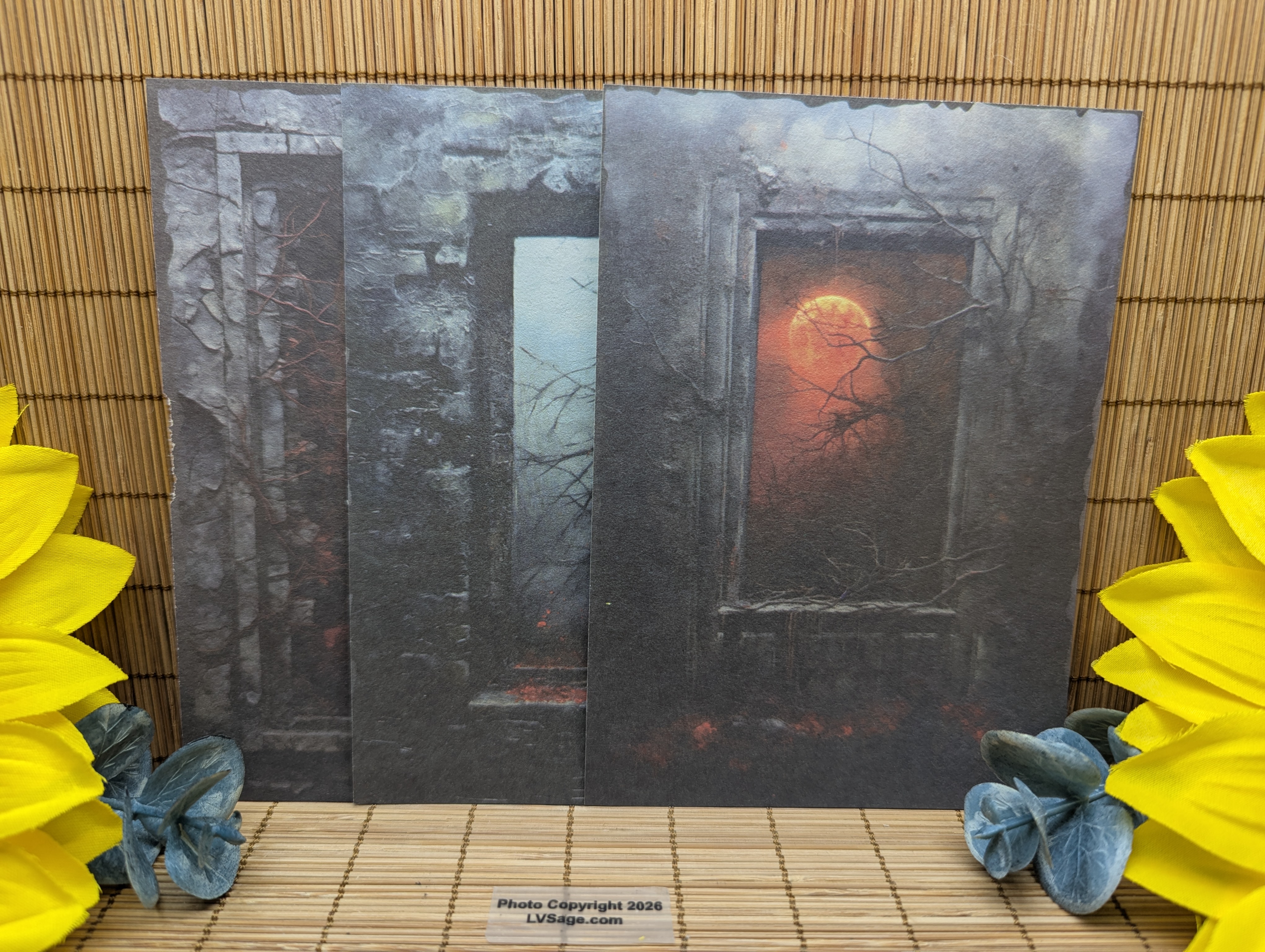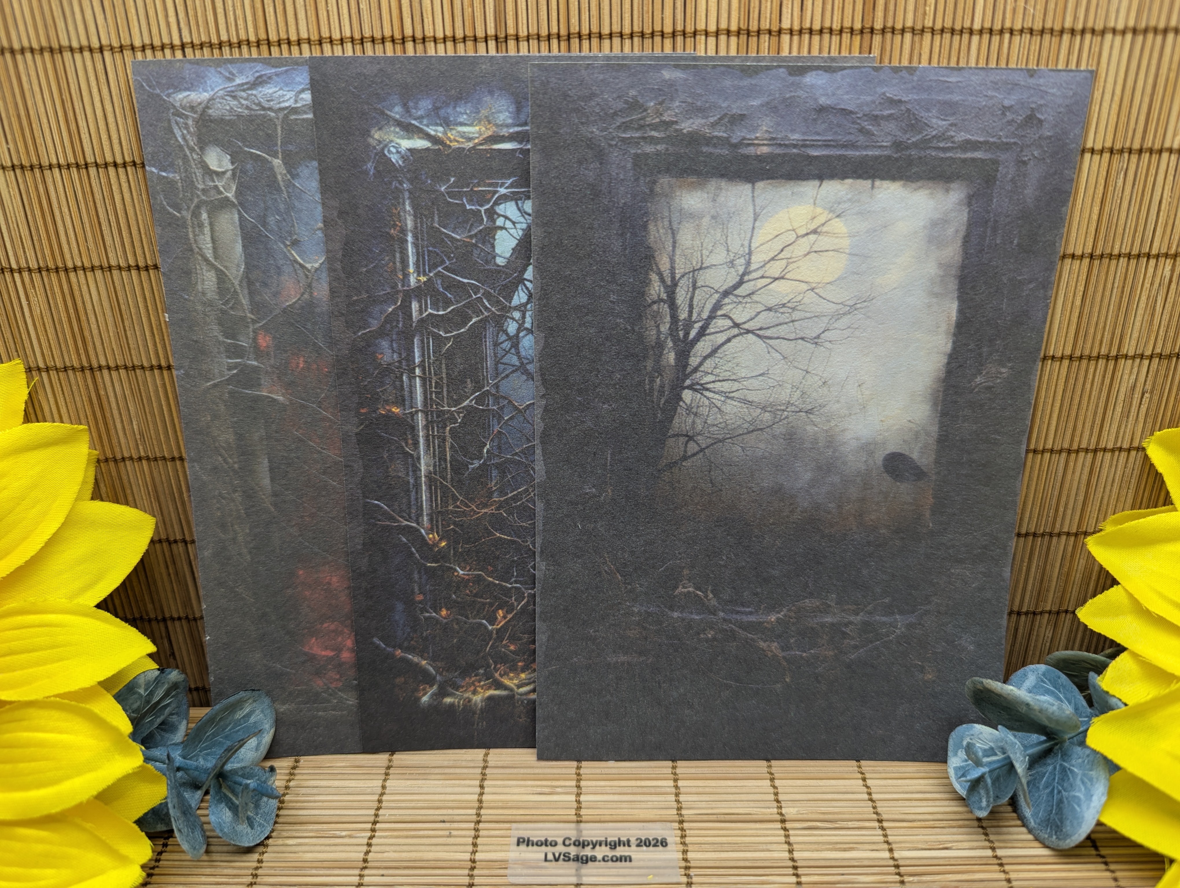 Standard set of nine spell papers featuring dark moody liminal spaces.