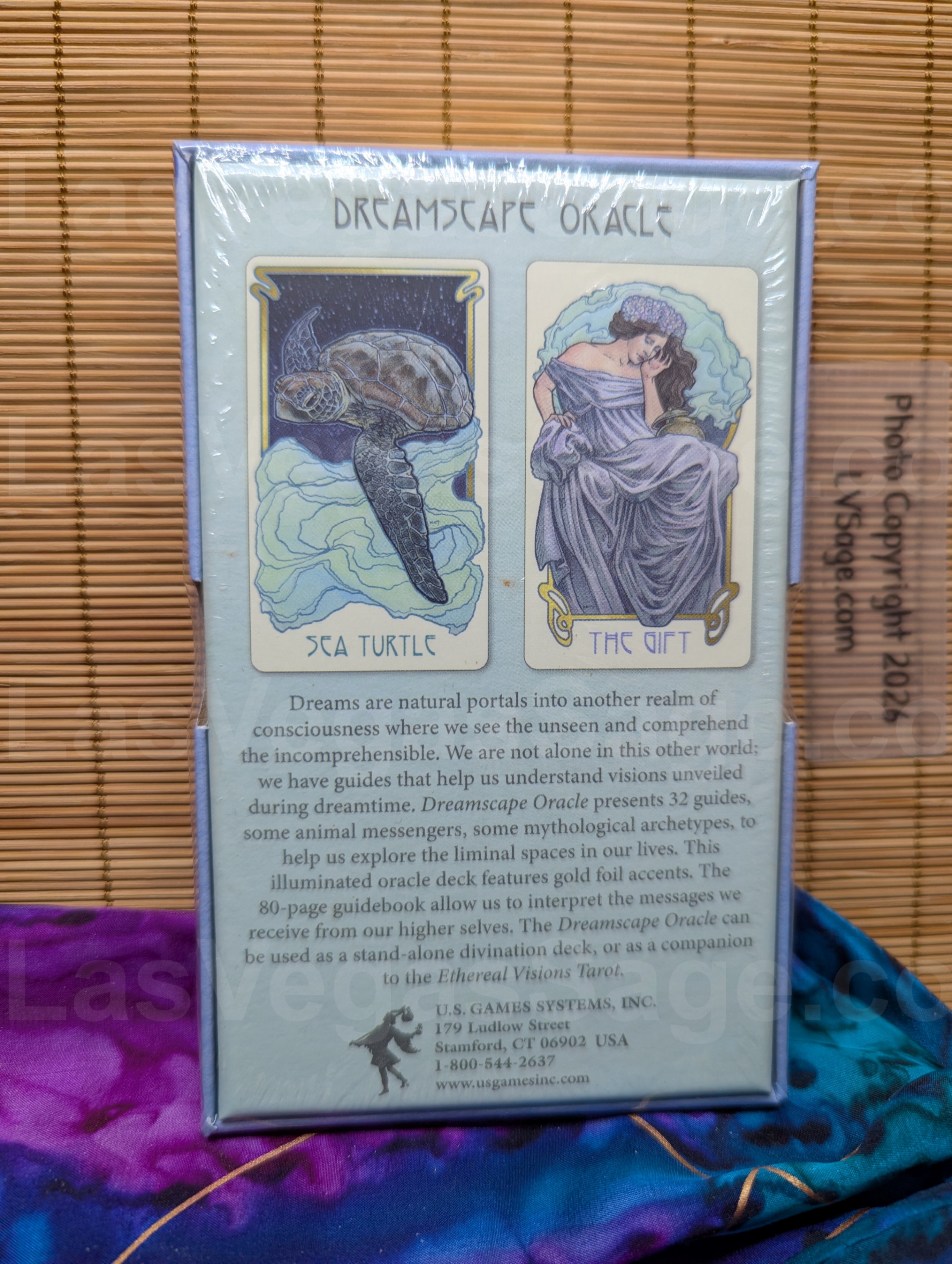 Dreams are natural portals into another realm of consciousness where we see the unseen and comprehend the incomprehensible. We are not alone in this other world, we have guides that help us understand visions unveiled during dreamtime. Dreamscape Oracle presents 32 guides, some animal messengers, some mythological archetypes, to help us explore the liminal spaces in our lives. This illuminated oracle deck features gold foil accents. The 80-page guidebook allows us to interpret the messages we receive from our higher selves. The Dreamscape Oracle can be used as a stand-alone divination deck, or as a companion to the Ethereal Visions Tarot.