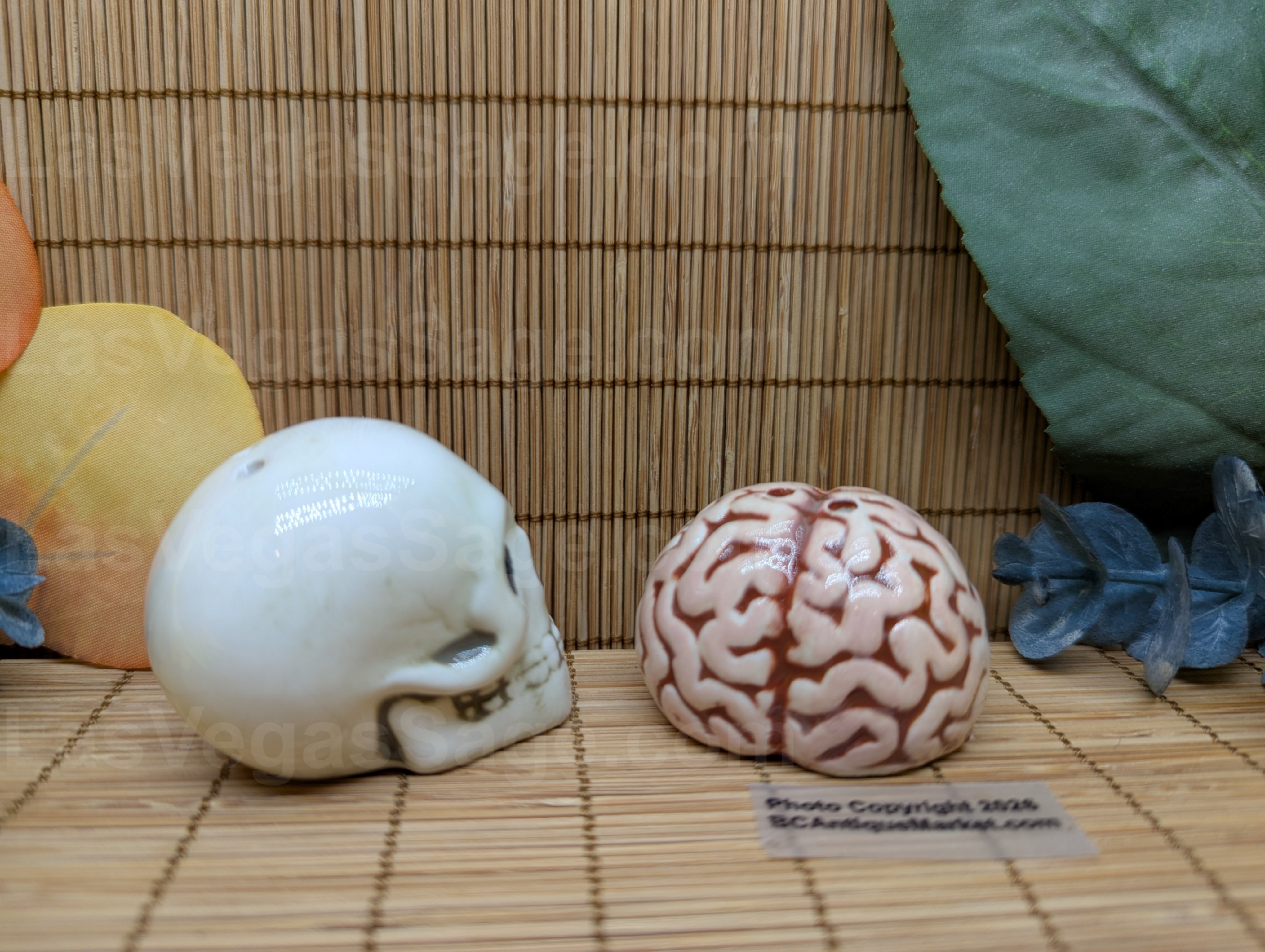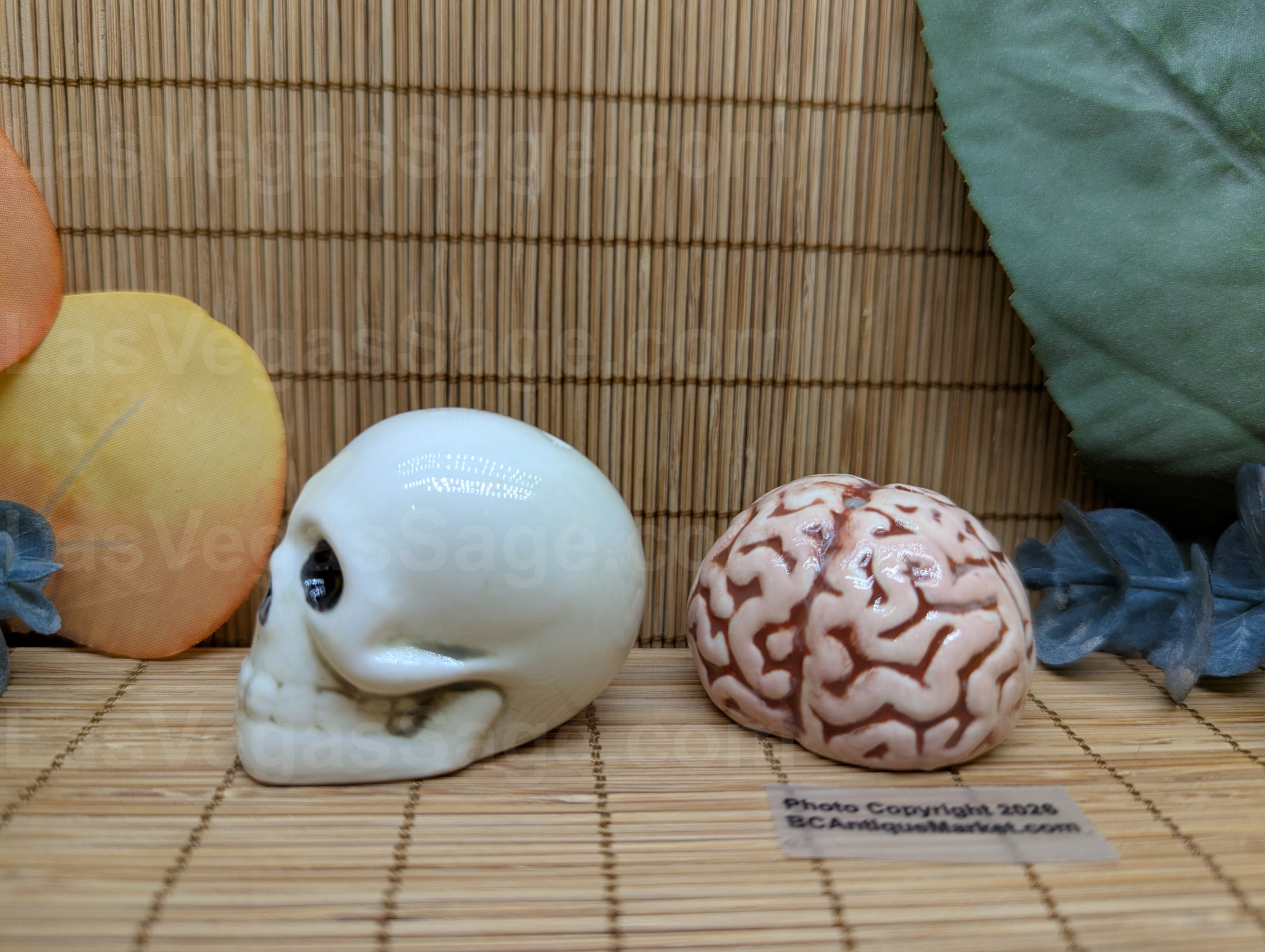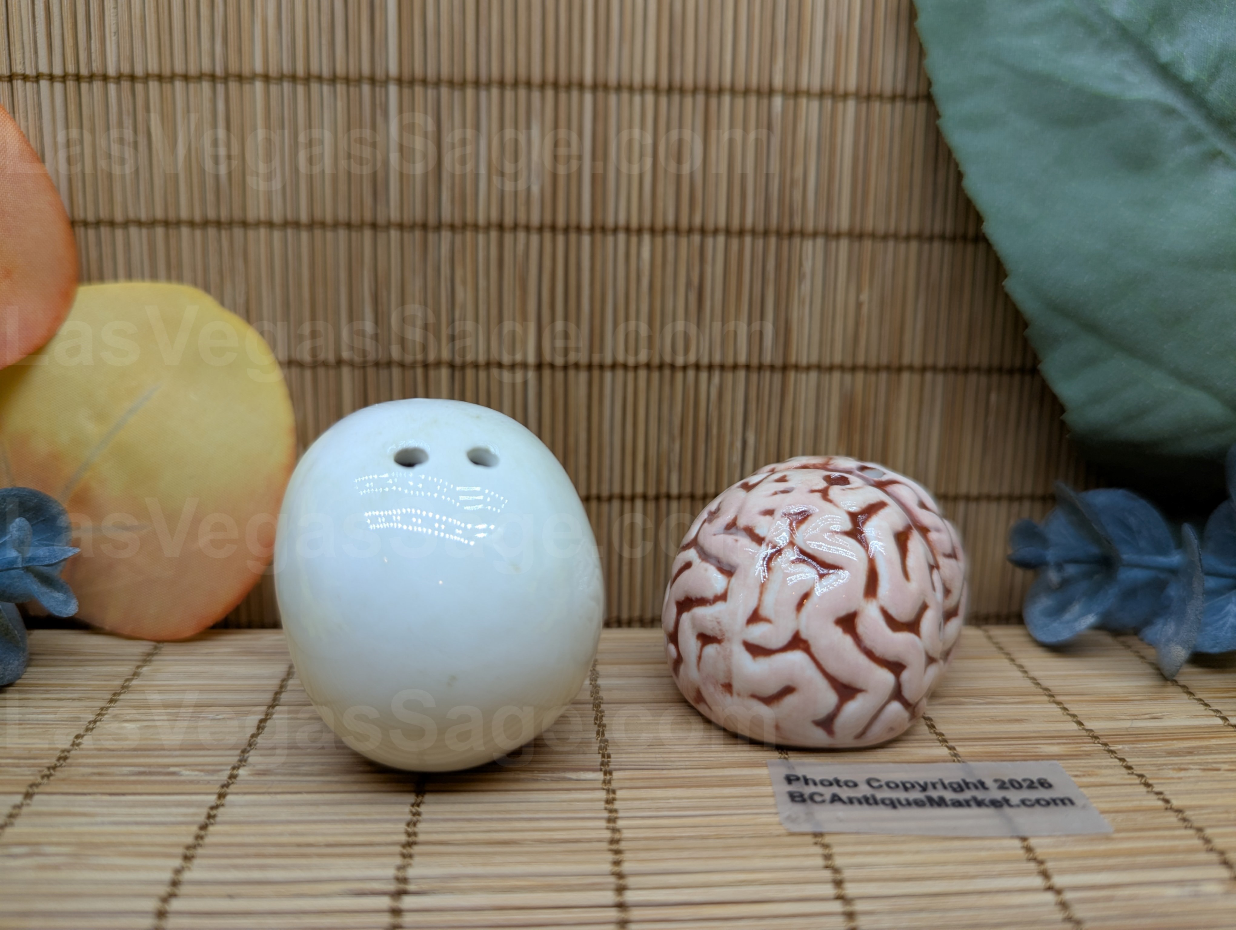 Skull and brain mini salt and pepper shakers. Each is aprox 1.5 inches tall and look awesome in an apothecary cabinet.